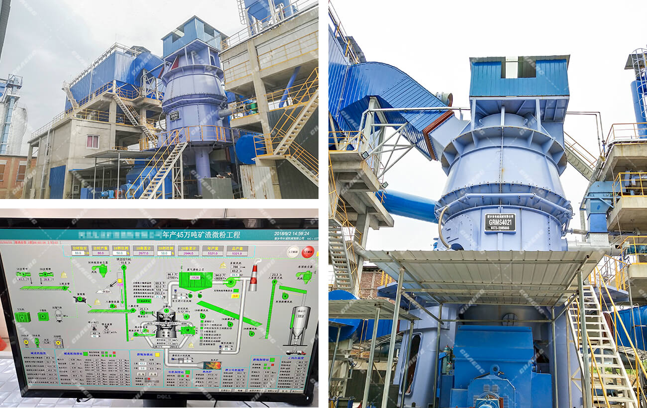 新鄉(xiāng)長城機(jī)械GRMS礦渣立磨機(jī)集粉磨、烘干、選粉、輸送、收集為一體,烘干能力大、電耗低,可滿足年產(chǎn)15~150萬噸礦渣微粉生產(chǎn)線項(xiàng)目,成品礦粉比表面積可達(dá)420~450 m2/kg。