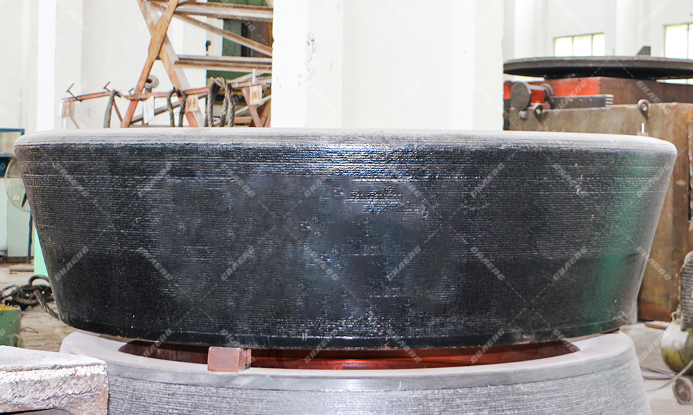 新鄉(xiāng)長城針對(duì)大型立磨工況條件,引進(jìn)國外先進(jìn)堆焊技術(shù),優(yōu)化明弧焊工藝,采用進(jìn)口德國品牌焊絲堆焊,確保堆焊質(zhì)量。