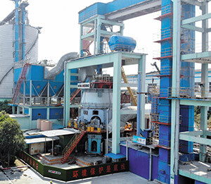 堆放著的礦渣由鏟車取料、喂料,通過皮帶機(jī)進(jìn)行輸送。在輸送過程中,礦渣原料先后經(jīng)由除鐵器和振動篩得到除鐵和篩分,然后通過稱重設(shè)備倉、提升機(jī)進(jìn)入立磨機(jī)進(jìn)行粉磨。粉磨后的礦渣借助熱風(fēng)爐提供的熱風(fēng),通過選粉機(jī)進(jìn)行選粉,同時得到烘干。符合細(xì)度要求的礦渣粉最后被輸送到收塵器收集、盛放后,由空氣輸送斜槽、提升機(jī)進(jìn)入成品庫中儲存。