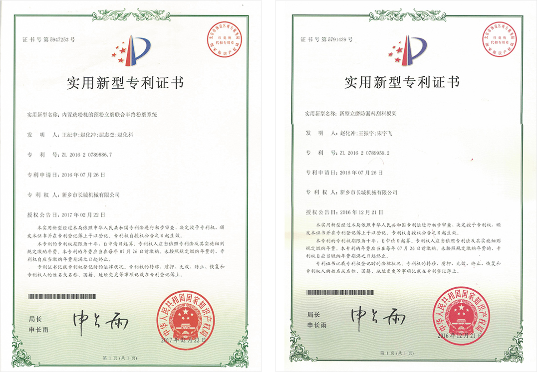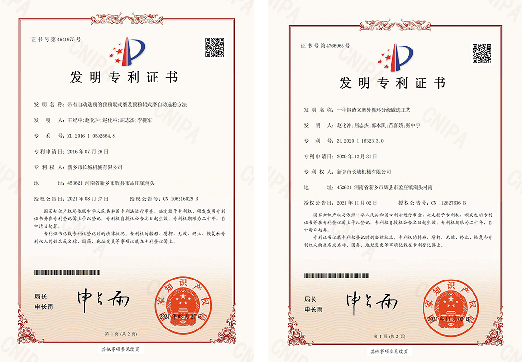 新鄉(xiāng)長城憑借豐富的生產(chǎn)經(jīng)驗、先進的生產(chǎn)工藝和科學(xué)的管理體系,推動企業(yè)管理和技術(shù)創(chuàng)新,公司取得了發(fā)明專利2項,實用新型專利100余項,軟著權(quán)4項,60余年品牌知名度和美譽度不斷提升,礦渣立磨市場占有率穩(wěn)居前列。