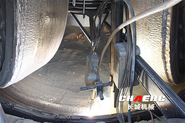 4、使用特種耐磨焊絲進(jìn)行明弧自動焊,堆焊緩沖層和耐磨層,厚度12mm,表面花紋為一字紋或者菱形加點(diǎn)紋(客戶選擇)。保證外圓直徑達(dá)到圖紙要求。